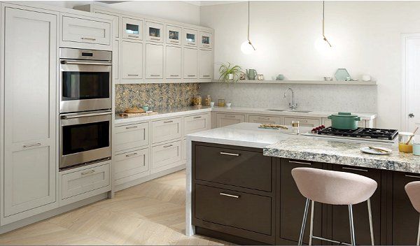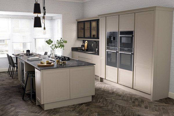 A perfect blend of classic and contemporary design is achieved through a combination of in-frame Shaker and Slab door styles. Classic detailing combined with understated elegance achieves a truly modern-classic look and feel. Colours featured are Cashmere and Truffle.