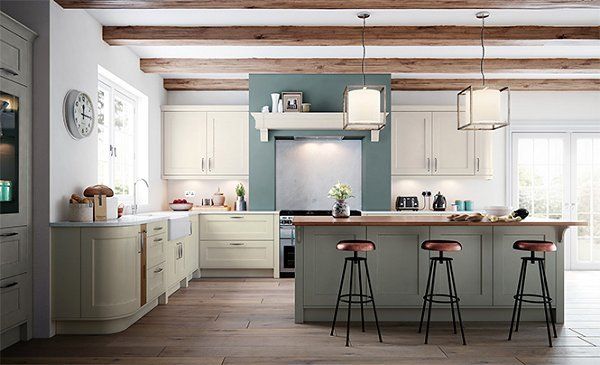 1909 is a beautiful Shaker-style painted kitchen with a timeless quintessentially British feel with quarter round beading used to soften the classic Shaker door.